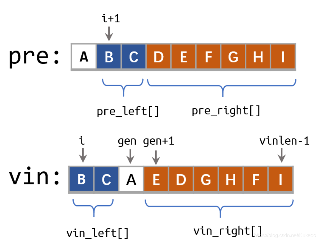 1~gen放入pre_left[],+1可以看图,因为头部有根节点gen+1~vinlen为右子树