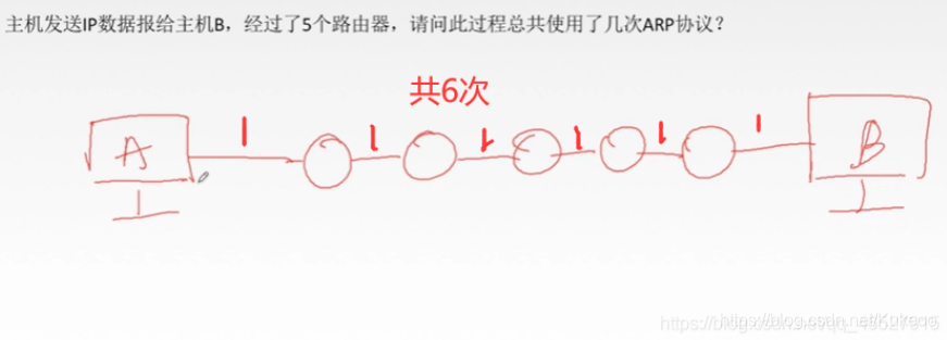 2.主机A发给另一网络上的主机B,用ARP找到本网络上一个路由器(网关)的硬件地址 ;