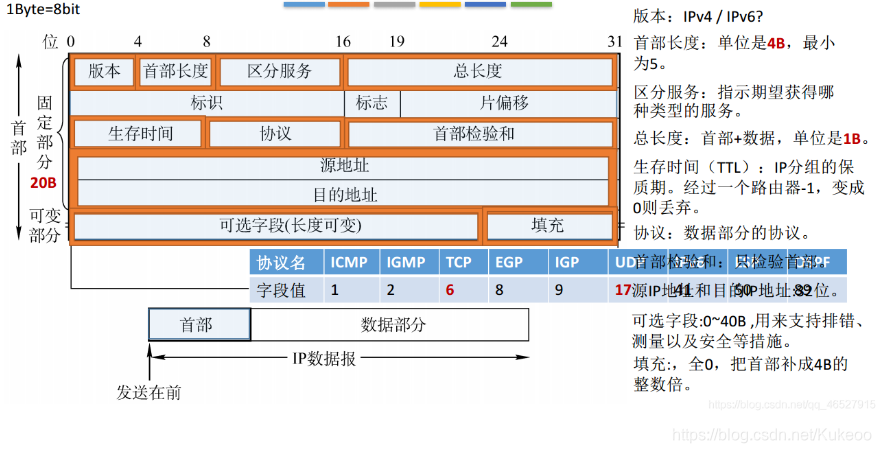 IP本身是一个大的协议,规定了这样一个格式的数据报首部,