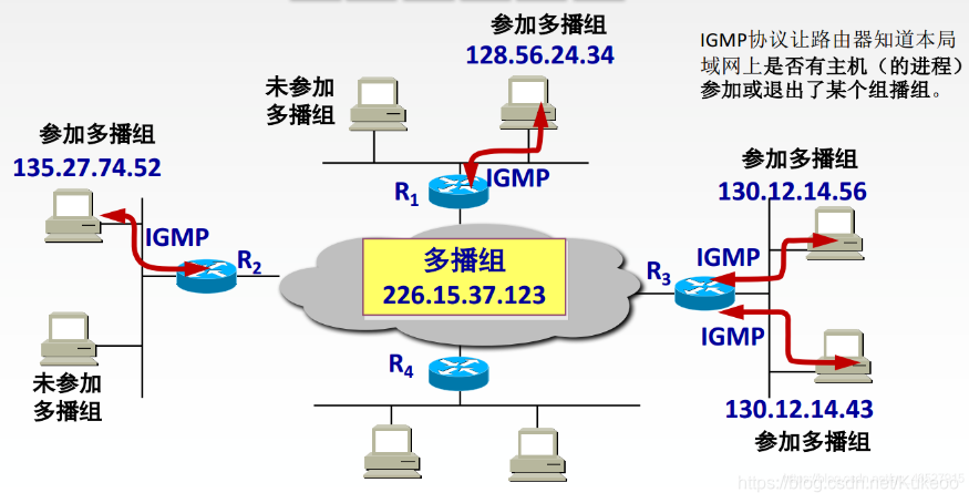 1.某主机要加入组播组时,该主机向组播组的组播地址发送一个IGMP报文,请求自己要成为该组的成员;