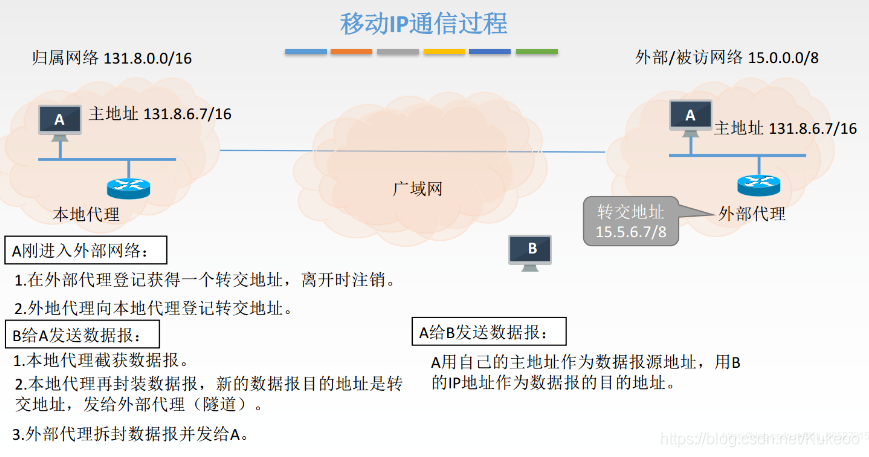 移动IP技术是指移动结点以固定的网络IP地址实现跨越不同网段的漫游功能,并保证基于网络IP的网络权限在漫游过程中不发生任何改变。
