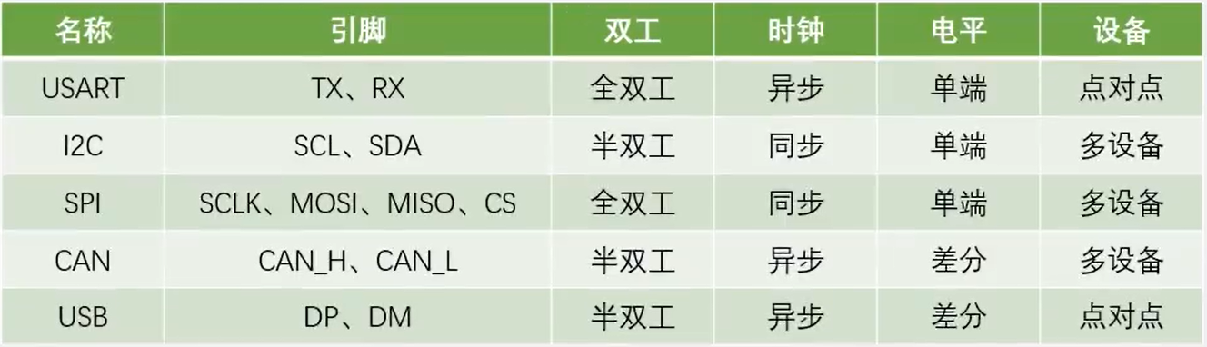 半双工:只有一根数据线,I2C、CAN、USB。CAN和USB两根差分线组合成一根线(对讲机)