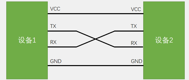 - 简单双向串口通信有两根通信线(发送端TX和接收端RX) TX与RX要交叉连接