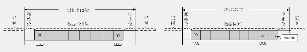 - TX从发送移位寄存器移位,RX从接收移位寄存器移位。