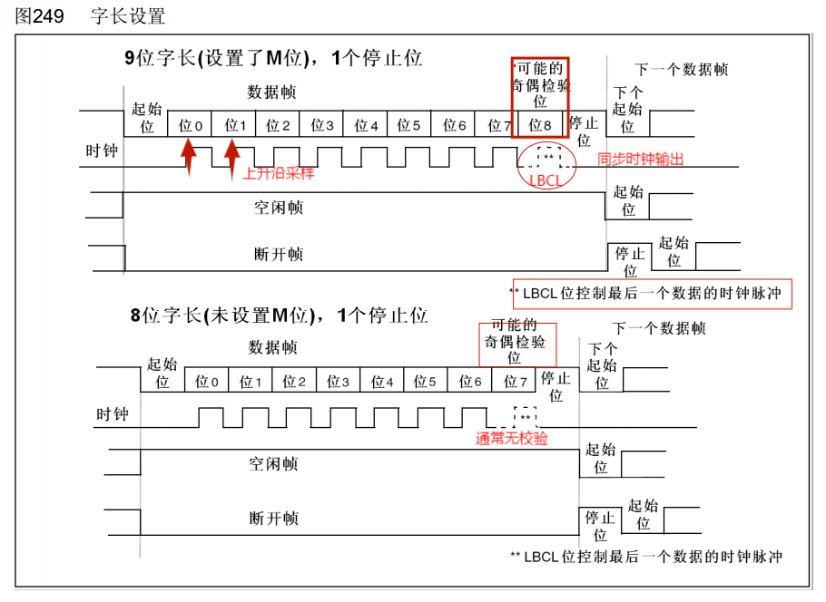 通常是9位数据位带校验或者是8位数据位不带校验的方式,为上升沿采样,上升沿对应每一个数据的中间,时钟速率和数据速率一致。