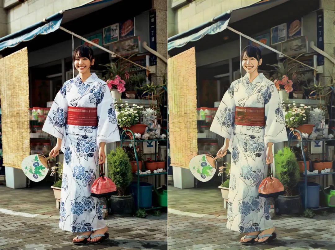 虽然原项目给出的最佳示例很多都是街景,但我们发现各种场景也都还行,如下是我们试用的原图与生成效果。看看第一张樱花道生成效果,忽然有一种《千与千寻》的感觉。