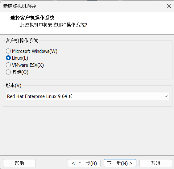 系统选择Linux系统,版本为红帽的第九版本
