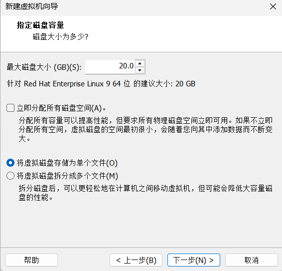 选择将虚拟磁盘存储为单个文件