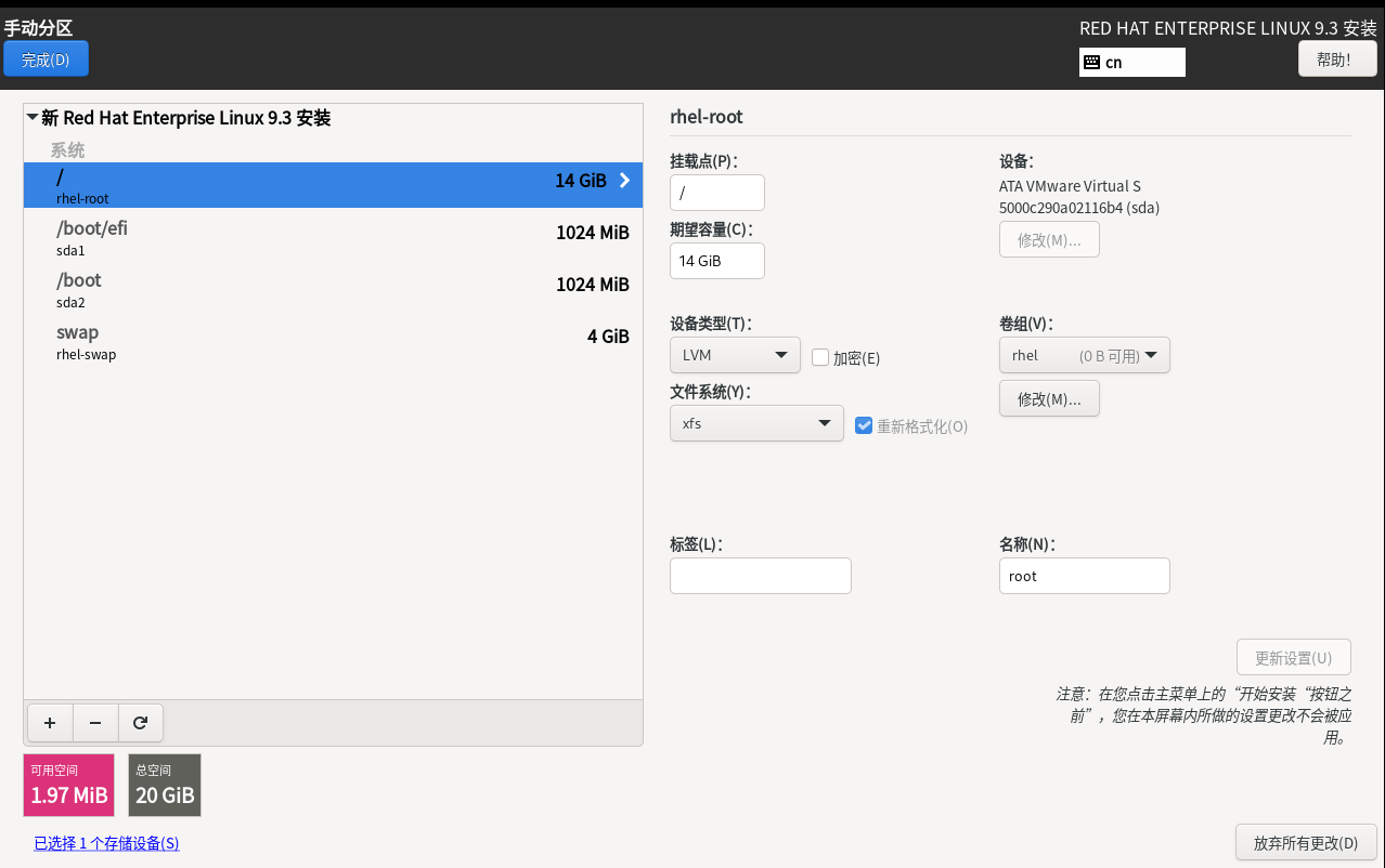 安装完成后配置磁盘以及账户