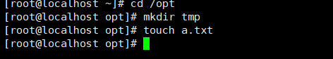 (5)在/opt目录下创建一个临时目录tmp,在临时目录下创建一个文件,文件名为a.txt