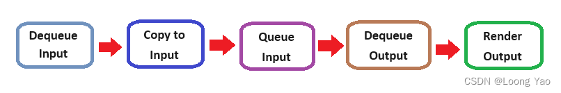 开发人员使用 dequeueOutputBuffer 获取解码缓冲区,然后使用 releaseOutputBuffer 释放硬件缓冲区,输出渲染到屏幕。