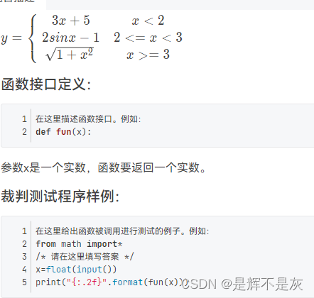 输入一个实数x,调用函数fun(x),根据x的值计算分段函数y的值,并将其返回主程序。
