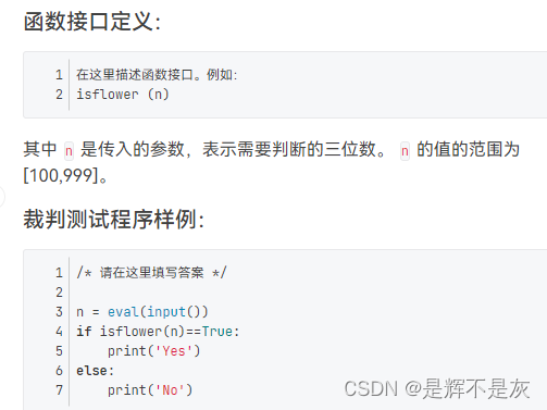 给定一个三位数n,要求编写函数isflower(n)判断n是否为水仙花数,如果是,则返回True,否则返回False。所谓"水仙花数"是指一个3位数,其各位数字立方和等于该数本身。例如,153是一个水仙花数,因为153等于1的立方加上5的立方加上3的立方之和。