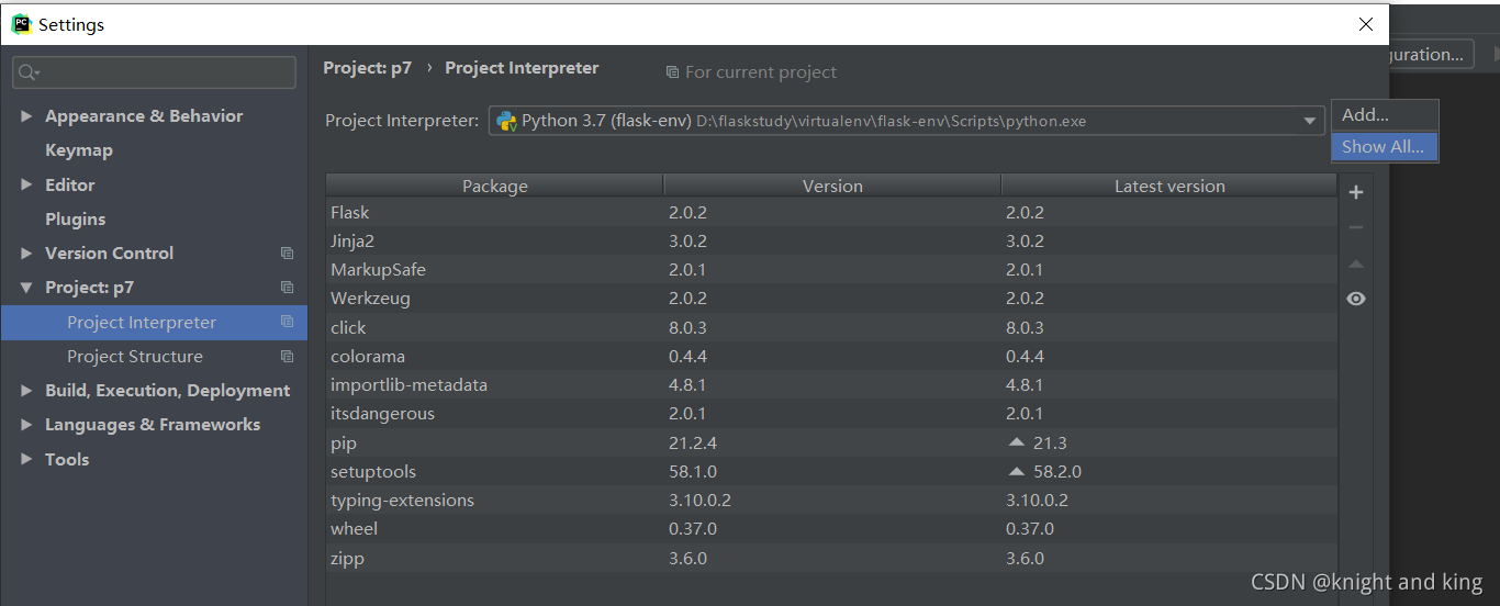 10.可以打开pycharm,在settings里找到project Interpreter