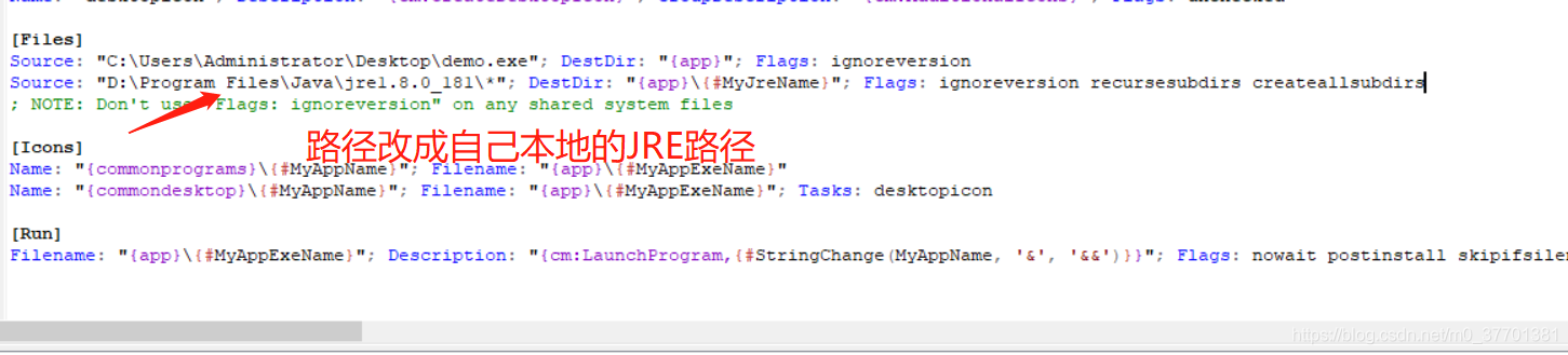 Source: "自己本地JRE路径\*"; DestDir: "{app}\{#MyJreName}"; Flags: ignoreversion recursesubdirs createallsubdirs