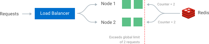 使用集中式数据存储的另一个缺点是,在检查速率限制计数器时增加了延迟。不幸的是,即使是检查像Redis这样的快速数据存储,也会导致每个请求增加毫秒的延迟。为了以最小的延迟确定这些速率限制,有必要在内存中进行本地检查。这可以通过放松速率检查条件和使用最终一致的模型来实现。例如,每个节点可以创建一个数据同步周期,该周期将与中央数据存储同步。每个节点定期将每个使用者的计数器增量和它看到的窗口推送到数据存储,数据存储将自动更新这些值。然后,节点可以检索更新后的值来更新其内存版本。集群内节点之间的这种收敛→发散→再收敛的循环最终是一致的。