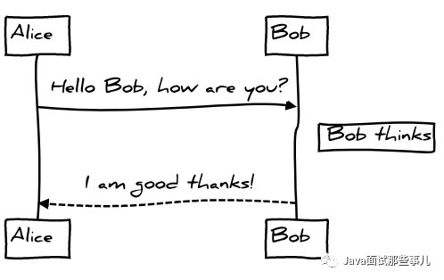 Alice->Bob: Hello Bob, how are you?
