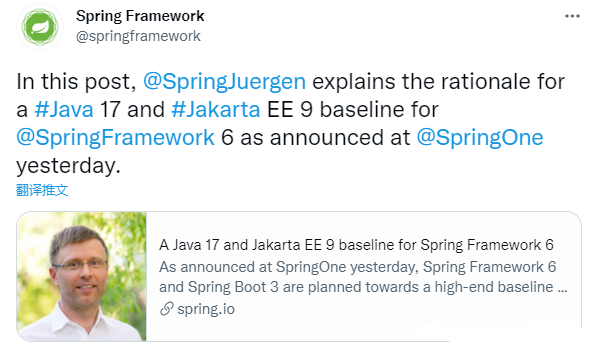 之前,Spring官方也宣布在Spring framework 6 和Spring Boot 3 中将支持JDK 17,见下图: