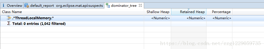 最后我们要确定Entry.key是否还在?打开Dominator Tree,搜索我们的ThreadLocalMemory,发现并没有存活的实例。