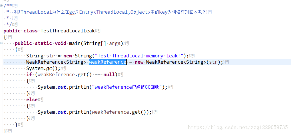 上面演示了弱引用的回收情况,下面我们看下ThreadLocal的弱引用回收情况。