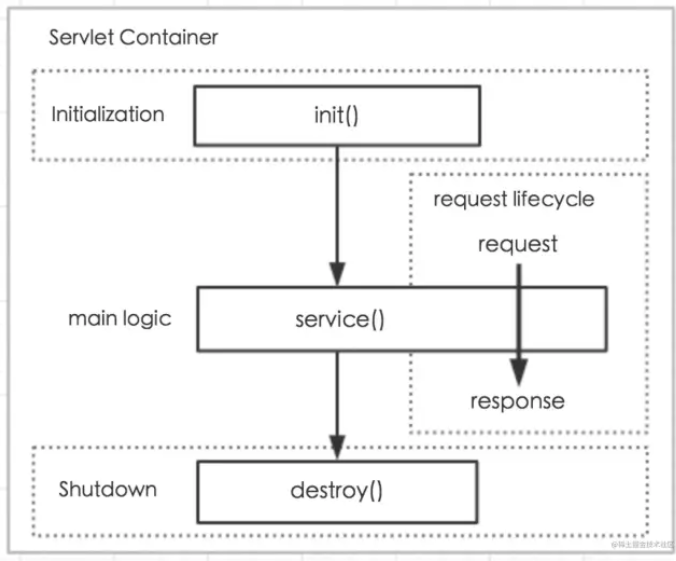 当 Server 不再需要 Servlet 时(一般当 Server 关闭时),Server 调用 Servlet 的 destroy() 方 法。