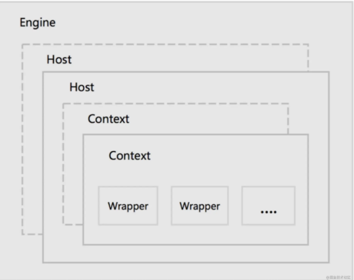 Wrapper:最底层的容器,是对 Servlet 的封装,负责 Servlet 实例的创 建、执行和销毁。