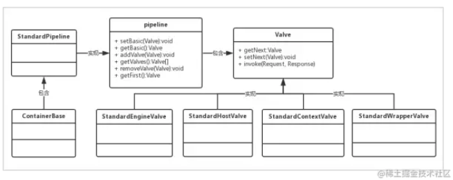 各层容器对应的 basic valve 分别是 StandardEngineValve、StandardHostValve、 StandardContextValve、StandardWrapperValve。