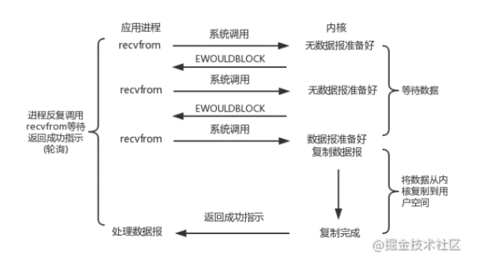 阻塞与非阻塞的区别在于进行读操作和写操作的系统调用时,如果此时内核态没有数据可读或者没有缓冲空间可写时,是否阻塞。