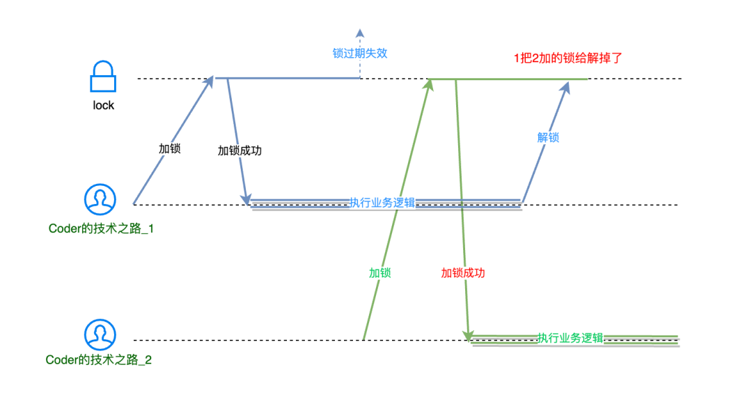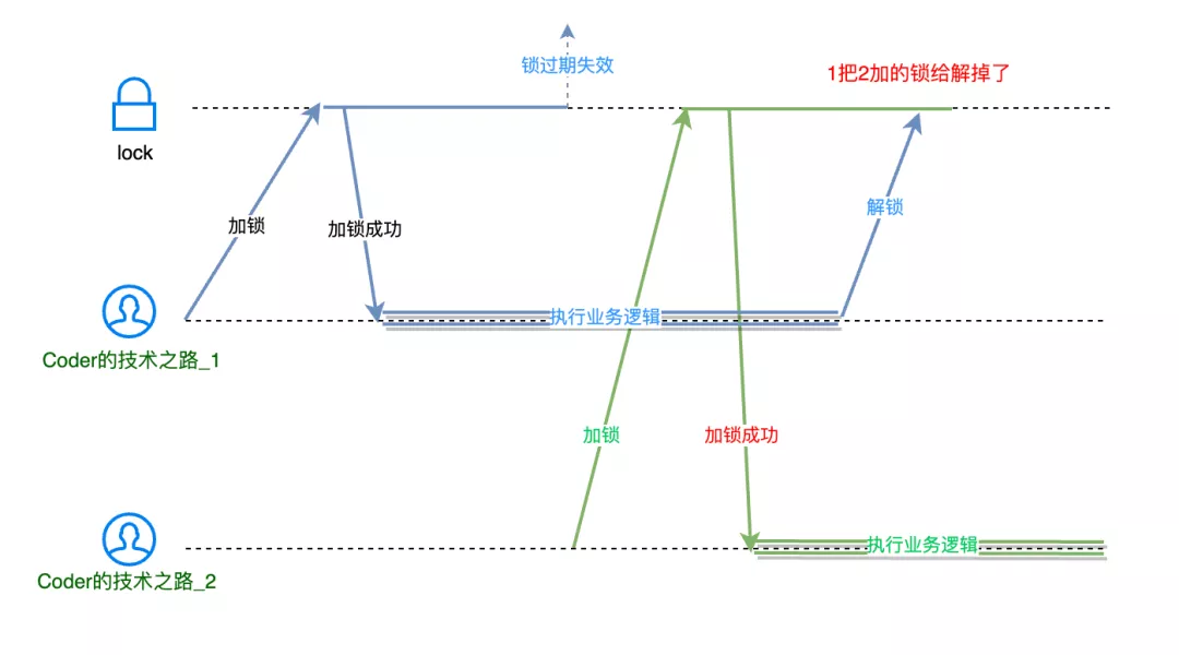 上图中,因为业务执行时间的不可控(或者遇到GC等不可预期的停顿),给分布式锁带来了使用问题。