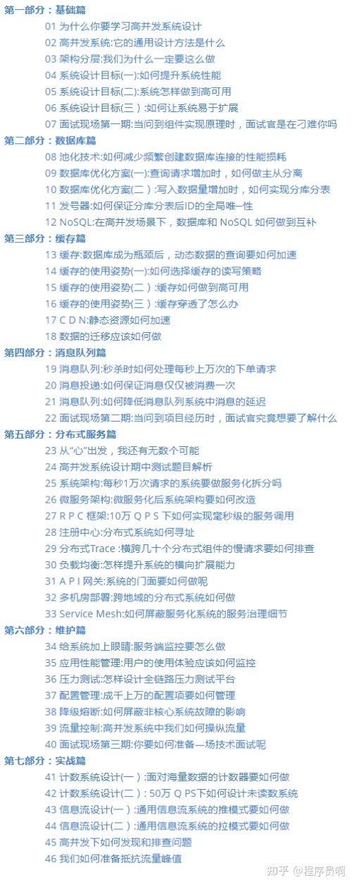 综上,便是这份 最强 “高并发” 系统设计46 连问 的全部内容,篇幅有限不多说,图片只能知道大概的内容。