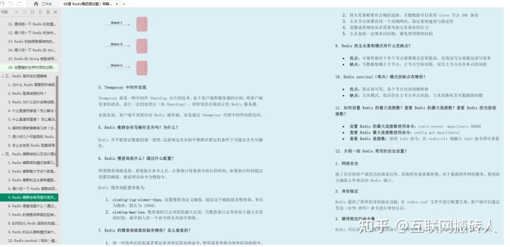 答案解析,不论是Redis还是MySQL,整个的内容都太多了,无法全部上传,但都已整理成完整的文档,68道 Redis精品面试题(带解析)25页,168道 MySQL精品面试题(带解析)64页,如需完整的答案解析进行参考学习,以及前面我手绘的Redis+MySQL的架构脑图xmind版,皆可100%分享一并学习!
