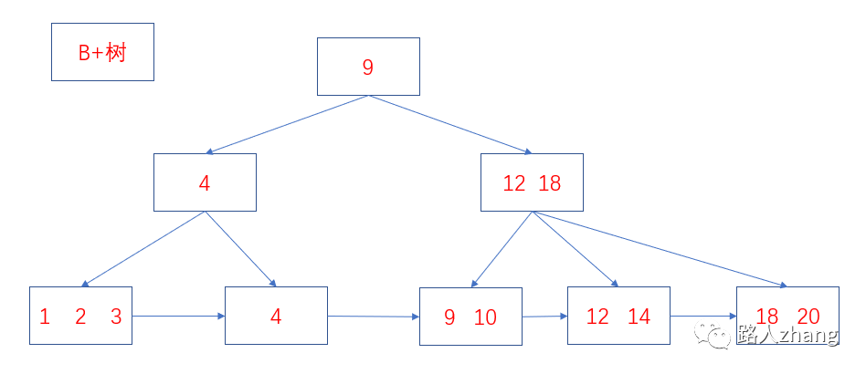 熟悉数据结构的同学都知道,B+树、平衡二叉树、红黑树都是经典的数据结构。在B+树中,所有的记录节点都是按照键值大小的顺序放在叶子节点上,如下图。