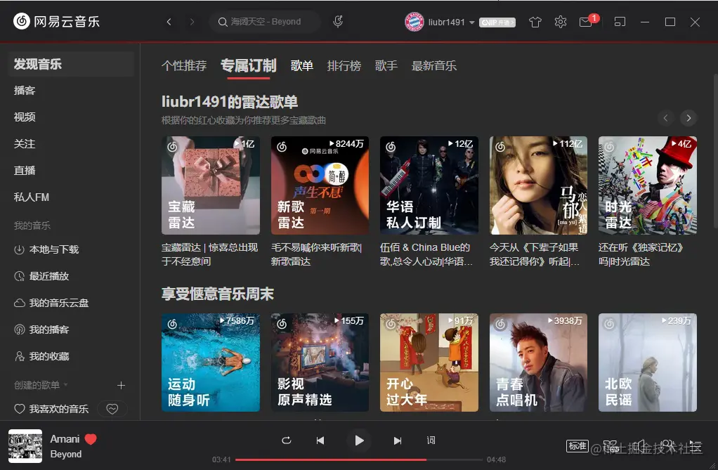 最后一款推荐的是网易云音乐,一边听歌一边敲代码,效率会提升杠杠滴。