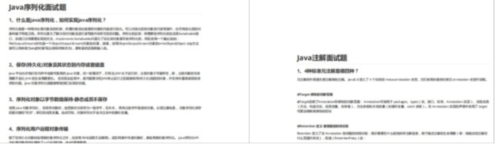 这是一份非常全面的文档,内容非常丰富,包涵Java基础、Java集合、JavaWeb、Java异常、OOP、IO与NIO、反射、注解、多线程、JVM、MySQL、MongoDB、Spring全家桶、计算机网络、分布式架构、Redis、Linux、git、前端、算法与数据结构、MyBatis、RocketMQ、Netty、Dubbo。 每个知识点都是分门别类整理好了,看的时候十分方便,由于内容较多,这里就截取一部分图吧。