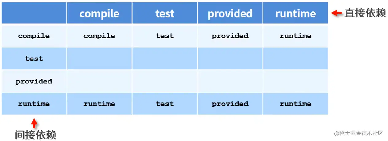 - 直接依赖:在当前项目中通过依赖配置建立的依赖关系
