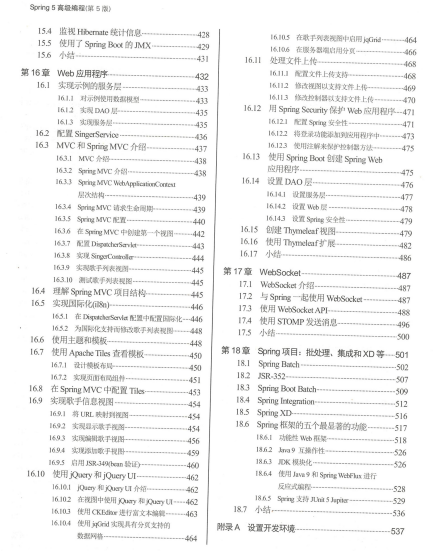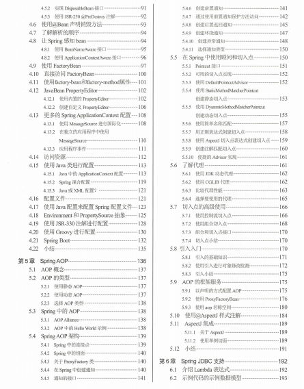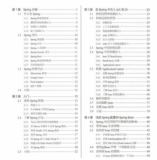 Spring 5高级编程(第5版)一书共18章,按照内容可以分为四大部分,第一部分(包括第1~5章)主要介绍Spring 5相关的基础知识;第二部分(第612章)主要介绍Spring的一些特殊功能;第三部分(第13-15章)主要介绍Spring测试、脚本支持以及应用程序监控;第四部分(第1618 章)主要介绍Spring在网络方面的应用以及对Spring项目组合中的一些项目进行概述。
