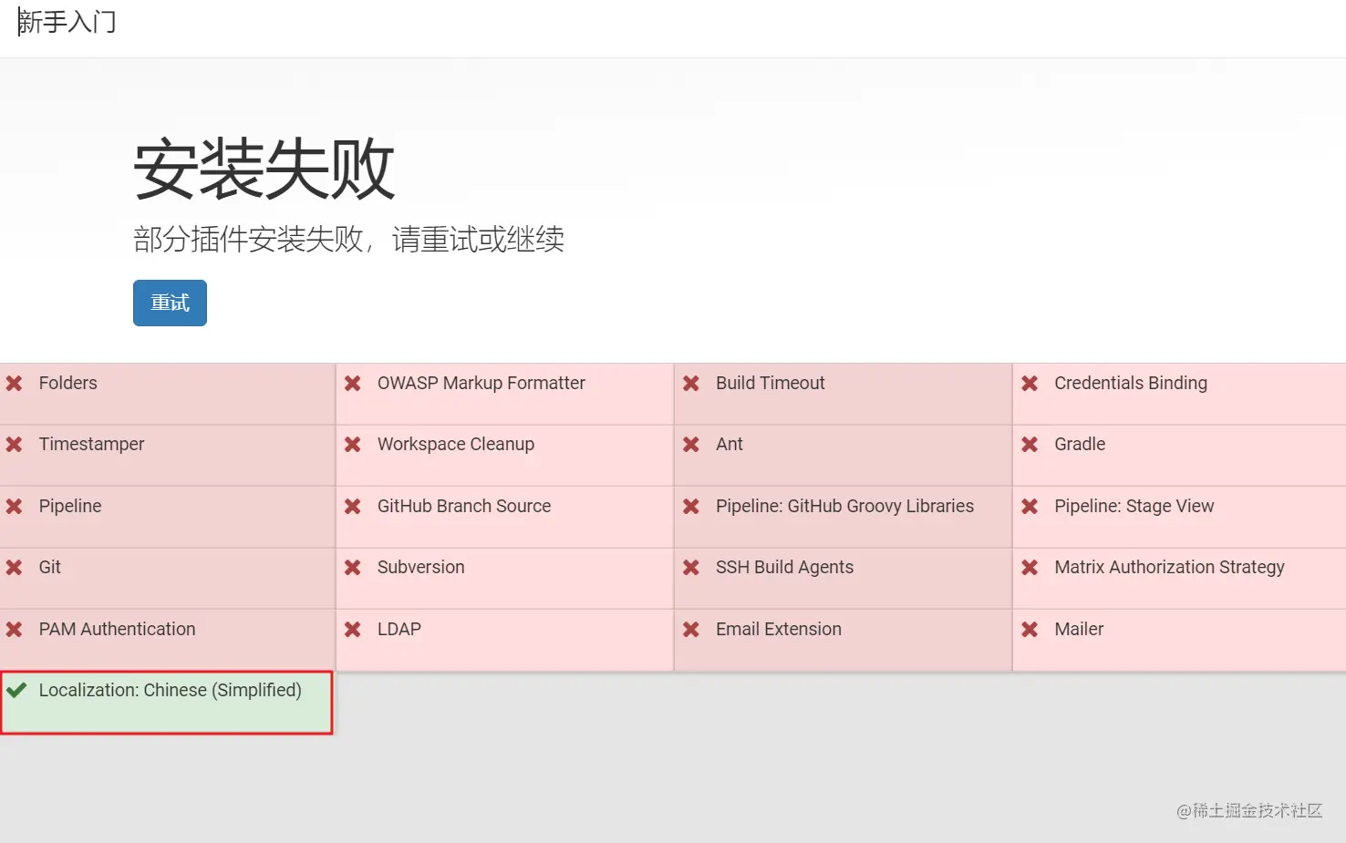 选择安装部分插件,因为网络原因,大概率会安装失败,所以只需要勾选最后一个中文插件就好了。