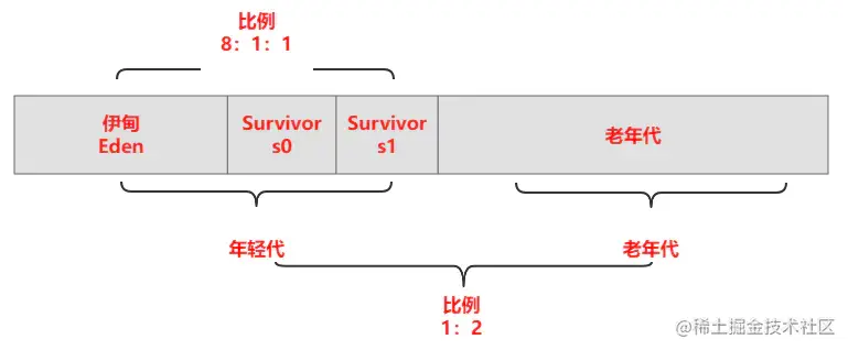 年轻代又被分为伊甸区和两个幸存者区,比例默认为:8:1:1