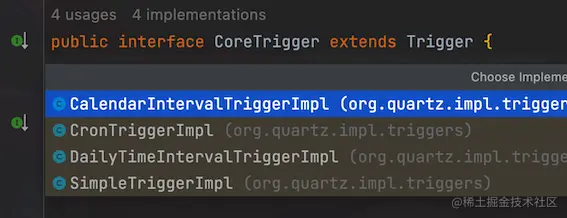 有了任务之后,就该设置任务的触发事件了,在Quartz中使用Trigger来描述触发Job执行的时间触发规则。一个Job可以添加多个Trigger,但是一个Trigger只能绑定一个Job。