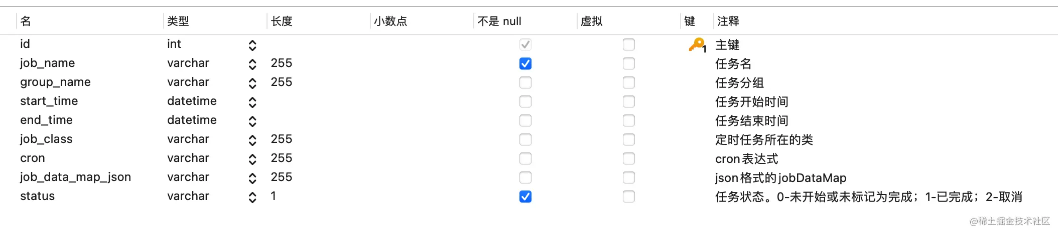 每个Job的jobName都必须是唯一的,建议使用和业务相关的主键id作为jobName。这样即可以保证唯一性,也可以通过jobName判断这个某个定时任务具体是做什么操作的,还可以在Job的execute方法中获取到这个主键id而执行相关操作,就不用额外传递参数了。比如订票系统中在发车前给用户发短信,就可以将订单的id作为jobName。