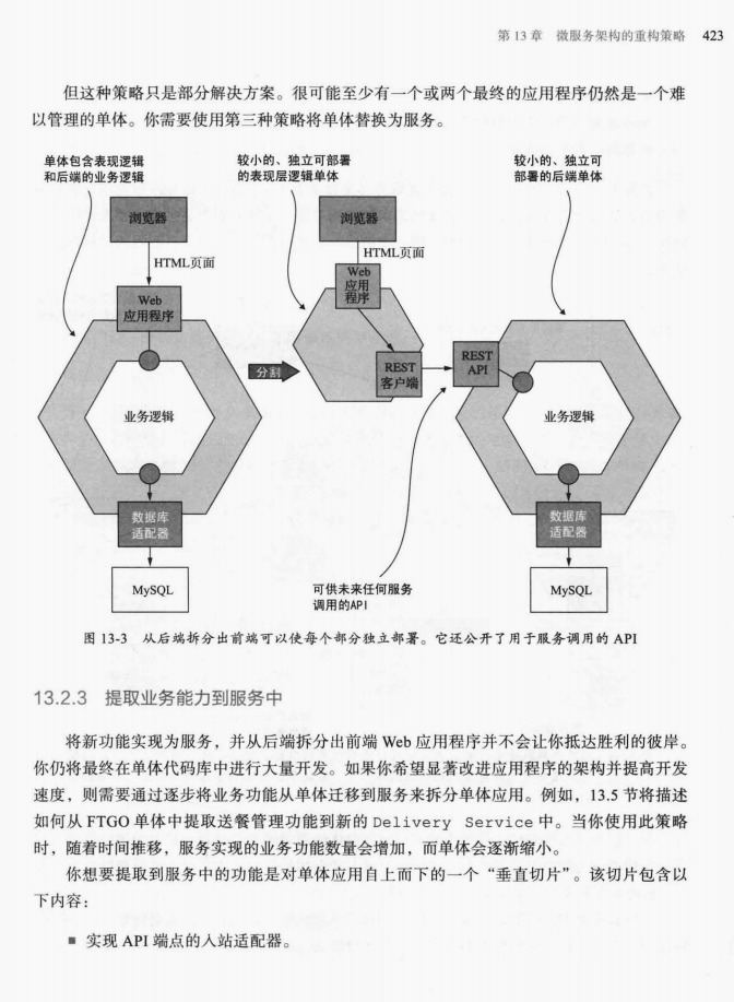 - 使用拆分模式中的业务能力模式和子域模式进行单体应用到服务的拆分