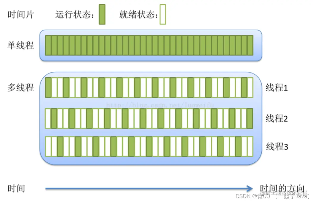 运行/就绪状态 统称为可运行状态 Runnable。 Java 程序中,线程在 运行/就绪状态 之间的切换由 JVM 自动调度,开发者无法获知。线程之间的调度采用分优先级多队列时间片轮转算法。进程在执行完 CPU 时间片切换到就绪状态之前会先保存自己的状态,下次进入运行状态时再重新加载。