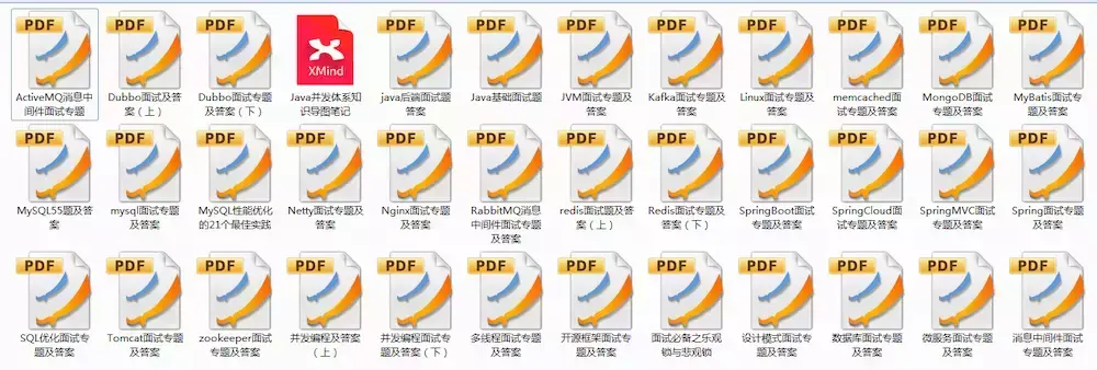 针对于上面的文章我总结出了互联网公司java程序员面试涉及到的绝大部分面试题及答案做成了文档和架构视频资料(包括Dubbo、Redis、Netty、zookeeper、Spring cloud、分布式、高并发等架构技术资料),希望能帮助到您面试前的复习且找到一个好的工作,也节省大家在网上搜索资料的时间来学习。