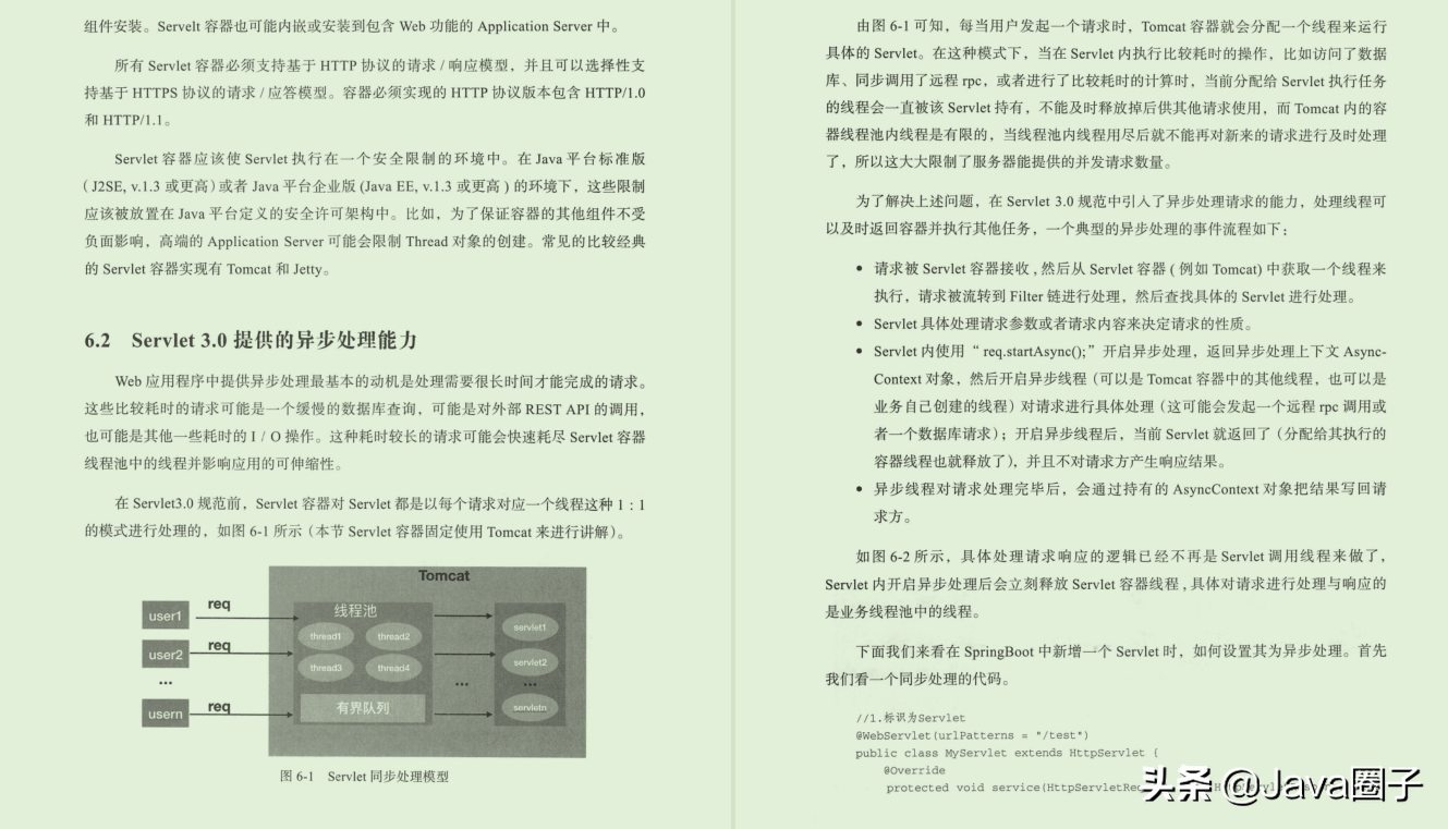 在Servlet3.0规范前,Servlet容器对Servlet都是以每个请求对应一个线程这种1:1的模式进行处理的,如图6-1所示(本节Servlet容器固定使用Tomcat来进行讲解)。