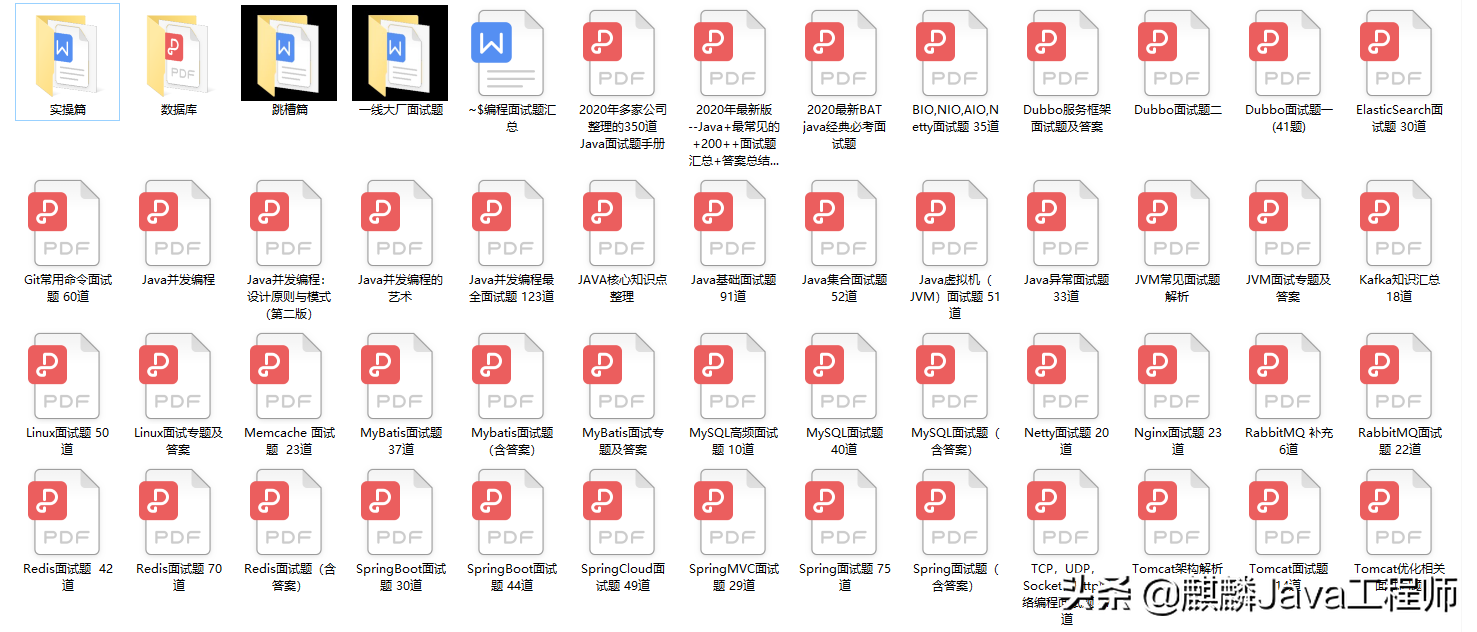 以上就是小编分享的BAT必考Java真题合集,由于篇幅有限,小编已经把每个专题对应的面试题(附答案解析)整理成了文档,下面是整理的真题合集。
