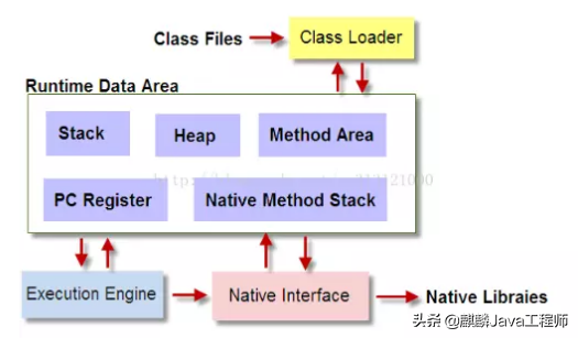 - 类加载器:加载类文件到内存。Class loader只管加载,只要符合文件结构就加载,至于能否运行,它不负责,那是有Exectution Engine 负责的。