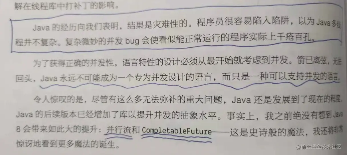 我着重看了自己比较感兴趣的并发编程这一块,想知道这位大佬对于目前Java并发编程是否有新的看法和意见,不出我所料,他没讲什么重要的东西,但是好像又讲了,带着吐槽批判式的口吻,陈列了他喜欢和讨厌Java并发编程的地方。