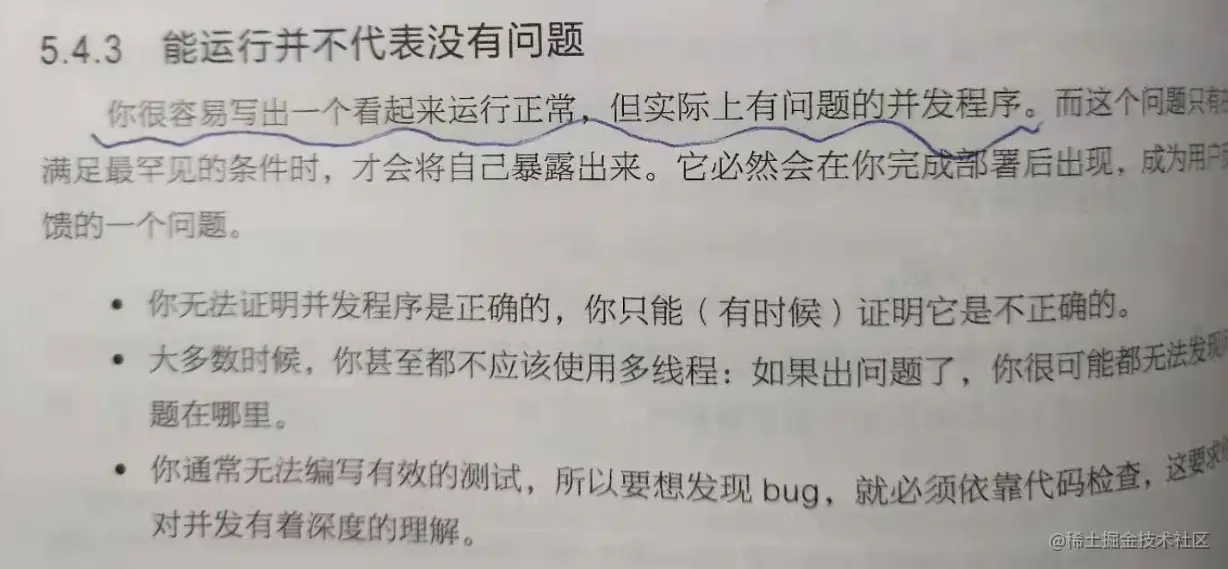 你很容易写出一个看起来运行正常但实际上有问题的并发程序。