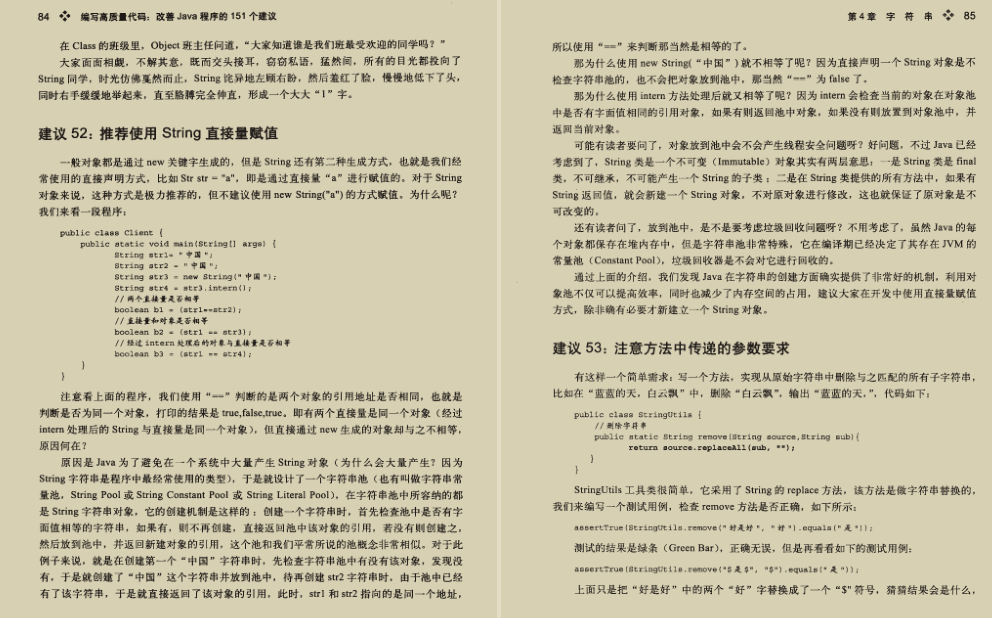 地方等:第4~9章重点针对JDK API的使用提出了80条建议,例如字符串的拼接方法该