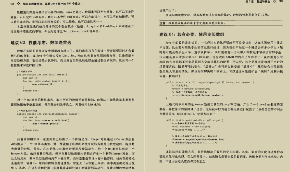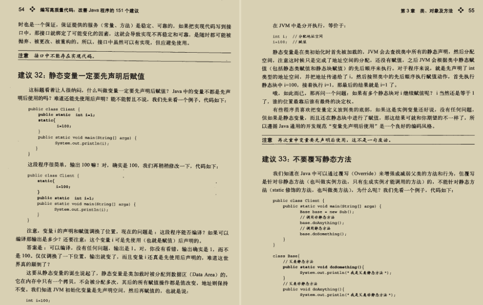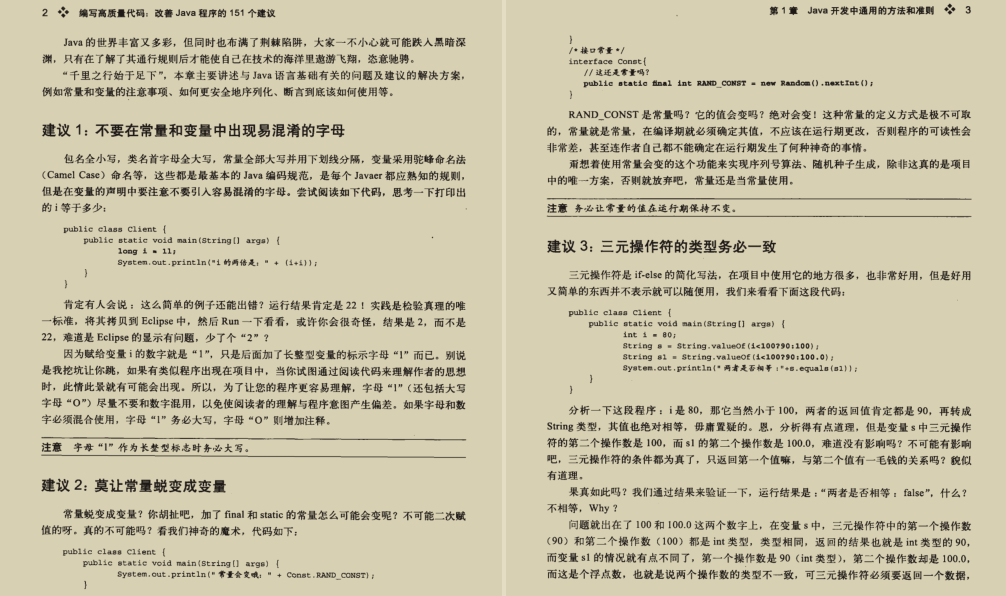 全书-共12章,第1~ 3章针对Java语法本身提出了51条建议,例如覆写变长方法
